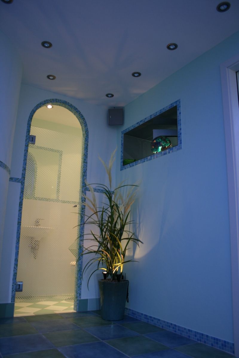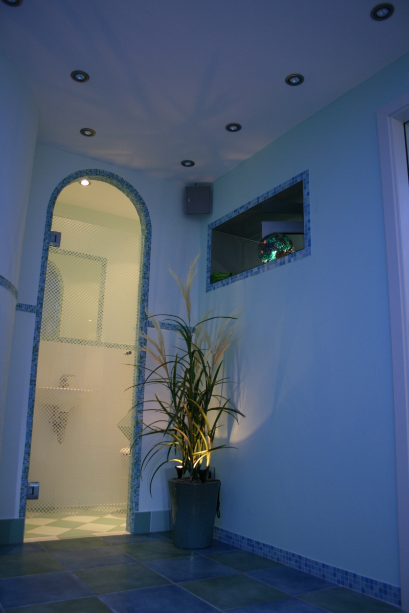 Hier können Sie sehen, wie aus einem unansehnlichen Heizungskeller eine Wellness-Oase wird. Wir haben die komplette Planung, von der Bauzeichnung bis zur Fotorealistischen Realisierung durchgeführt. Alle Gewerke wurden von uns bereit gestellt, koordiniert und durchgeführt. Auch die Dekoration, Einrichtung mit Handtüchern, HiFi-Anlage, Kunstpflanzen etc. lag in unseren Händen.