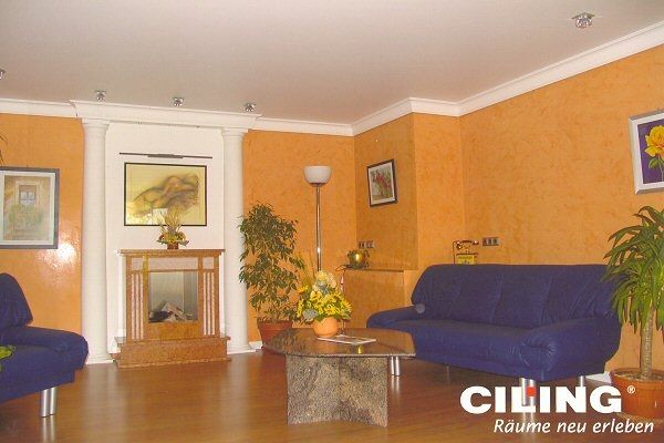 Die CILING-Decke ist sozusagen ein "Decke-unter-Decke-System", bei dem die alte Decke zwar komplett kaschiert wird, dabei aber völlig unberührt bleibt. Diese maßkonfektionierten Decken können in nahezu jeden Raum integriert werden und ihm zu neuem Ansehen verhelfen. Abgesehen vom Bohrstaub entsteht auch bei der Montage kein Schmutz, so dass die Räume sofort wieder wohnfertig sind; sie müssen noch nicht einmal ausgeräumt werden.